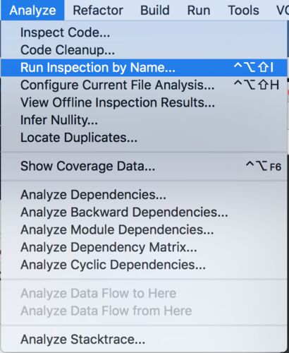 Analyze -> Run Inspection by Name... または Ctrl+Shift+Option+I を実行 flowを実行する場合はflow errors ESLintを実行する場合はESLint F2を押すと順番にエラー該当箇所にジャンプできます。